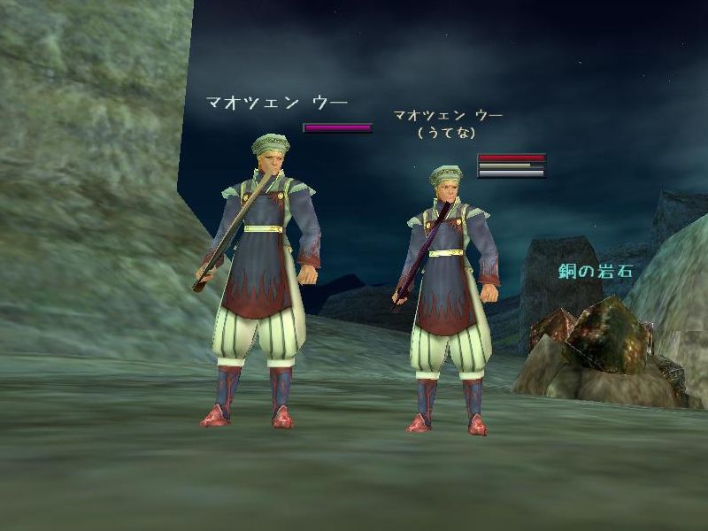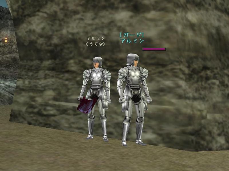 貴方には2M近い資金があったはずです 「おう、殆ど使っちまって80kくらいしかねぇんだわ」 聞けばお気に入りの芸人にパトロネス気取りで相当貢いだらしく その上、使う当てのない時の石を二つも買ったそうな 「おう、だって一個300kで安かったからよぉ・・・」 確かに一個300kは安いですよ、安いんですけどね 今買う必要が何処にあるっていう話なんですよ! 「おう、それよりも我らがDC団十傑集の一人、恥骨のベリーがそろそろ裁縫100になるとの連絡があってな、とうとうBU計画も最終局面に・・・」 露骨に話を変えましたね・・・ DC団てウチのFSのことですか? 十傑集と言ったってメンバー三人しかいませんよ? というか何ですか?「恥骨のベリー」て? 「おう、白べりーの二つ名でよ略して白恥骨。どうだ?なんとなく美味そうだろ?w」 確かに美味そうですよ、美味そうですけどね 「おう、裁縫100にしないとずっとこう呼び続けるぞと言ったら、白恥骨の奴め泣いて喜んでたぞw」 ・・・酷いパワーハラスメントですね また来なくなっちゃったらどうするんですか! BU計画の鍵を握る重要なお方なのに・・・ 「おう、ちょっくらハッパかけただけよ。そしたら『土曜日までに100にしますっ!』って宣言したぜw」 そりゃまぁ、あと3,4くらいだし素材もいっぱい用意したみたいですし 問題なく100いくんじゃないですかね 「おう、それじゃ賭けるかい?俺は『土曜日までに100いかない』に100kな」 お金のない社長が凄い強気だ・・・ まさかね・・・ 「おう、そのまさかよ。俺やお前なら何の問題もなく100まで上げられる。でも白恥骨はどうかねぇ」 ・・・社長、10kなら受けて立ちます 1.2Mとお安かったので買っちゃいました ただ、必要スキルが物まね90と着こなし80でして キャラ的に物まね90は問題なかったのですが 着こなし80をどうやって捻出するか考えて考えて、考えあぐねた結果 下げました、生命力を、0まで まさしく芸の為に命を削りました それではまず、パーフェクトミミック七つの掟 一つ、パーフェクトミミック(以下PM)が使用できる相手はPC、ペット、及び攻撃できる対象のNPC 一つ、採取系のオブジェクト(鉱石、大木等)、クエストNPC、変身テクニック使用中のPC、及びPMを受けたPMにはPMできない 一つ、PMを受けたPCがジャンプすることでPMは解除される 一つ、PMをした対象から一定の距離を離れるとPMは解除される、ただし効果時間内に近づけばまた変身する 一つ、PMの対象となったPC及びNPCが死亡、ゾーン移動、ログアウトするとPMは解除される 一つ、PMを使用したキャラが死亡した場合、解除条件が満たされない限り効果時間内はPMした対象の死体として残る 一つ、PMをPCに使用した場合、変化するのは対象の種族と性別のみで、装備・髪型などは元のキャラに準ずる まずは小手調べ 次、デカブツ 共闘の隙をついてPMしました テイマーの育成中の隙を突いてPM成功 この前に一回範囲魔法に絡まれて死んでます ドサクサにまぎれてPM成功 画像ではよく分からないかもしれませんが ナジャくらいの大きさはあります あまりにでかくなりすぎて骨に嵌って動けなかった そういえば社長 ん?なんだ? 最近、ベリーさん見かけないっすね まぁ、うちは自由出勤だから、休みたければいくらでも休める それにしても来なさすぎですよ 確かにな どうしちゃったんでしょうねぇ・・・ お前のセクハラで来るのが嫌になったんじゃないのか? なんてこと言うんですかっ! ん?違うのか? 僕はセクハラなんてしてませんよ!むしろセクハラしてるのは社長でしょ! 何のことだ? ほら、アレですよ、例の計画 あぁ、アレな。でも例の計画については本人に話すらしてないぞ あら、そうなんですか?僕はてっきりそれが原因なのかと・・・ ふむ、それでは何が原因なんじゃろうな・・・ また来て欲しいっすねぇ おう、来て欲しいのう。例の計画のためにもな・・・