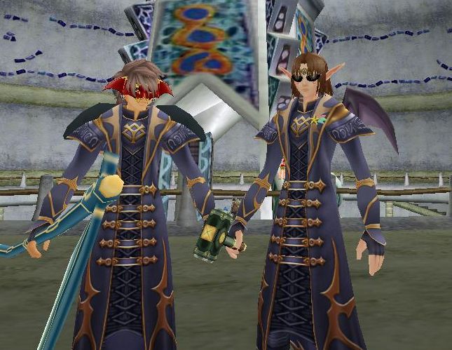 正社員になれば給料とかボーナスが貰えるのだろうなぁ などと淡い期待を抱いていた時期が僕にもありました・・・ 「おう、うちは完全歩合制だからよ」 完全歩合給っすか・・・ 材料はいっぱいあるから自分でモノ作って販売すれば それがそのまま僕の収入となるわけだが 殆どのアクセサリの値段なんてたかがしれてるし・・・ 高価な品もあるけど、アクセサリの消耗はそんなに激しくないから 買い替え需要もあまりないし・・・ もしかしたら、ちょくちょく駄賃貰っていた見習い時代の方が高収入だったんじゃないか・・・ そもそも、社長自身からして真面目に商売する気配がほとんど見られない 素材屋を謳っているわりには、金属関係の取引が成立するのは稀である そのくせ暇つぶしがてらに採掘に行っちゃうものだから インゴットの在庫は貯まる一方である ミスリルインゴット300個なんて、何に使えってんだ 逆に材木関係の取引は頻繁にあったりする 特にFS<喫茶なごみ>の方々は得意先らしく 木の板材の注文が千枚単位でくる 社長の代理で板材を納品しに行った時も 二千枚の板材を納品してきた しかし、ウチの社長はあまり利益追求に熱心では無いらしく 板材を一枚10Goldで卸している 社長!たまに板材一枚20Goldで買い取ってるところがあるんですが! 露店で販売すれば、もうちょっと高く売れるのではないですか? 「おう、千枚切るのに一時間程しかかかんねぇから、そんなもんでいいだろ。露店するの面倒だしな、ガッハッハッハ!」 ・・・大丈夫かな、このFS いやいや、自分だけでもちゃんとしよう しっかり相場を調べて、利益の出るようにしよう 僕はそう決意した 空いた時間を利用してネクロマンサーになってみた やはりネクロのシップ装備はカッコイイ・・・、頭以外はね 兄貴とツーショット PR